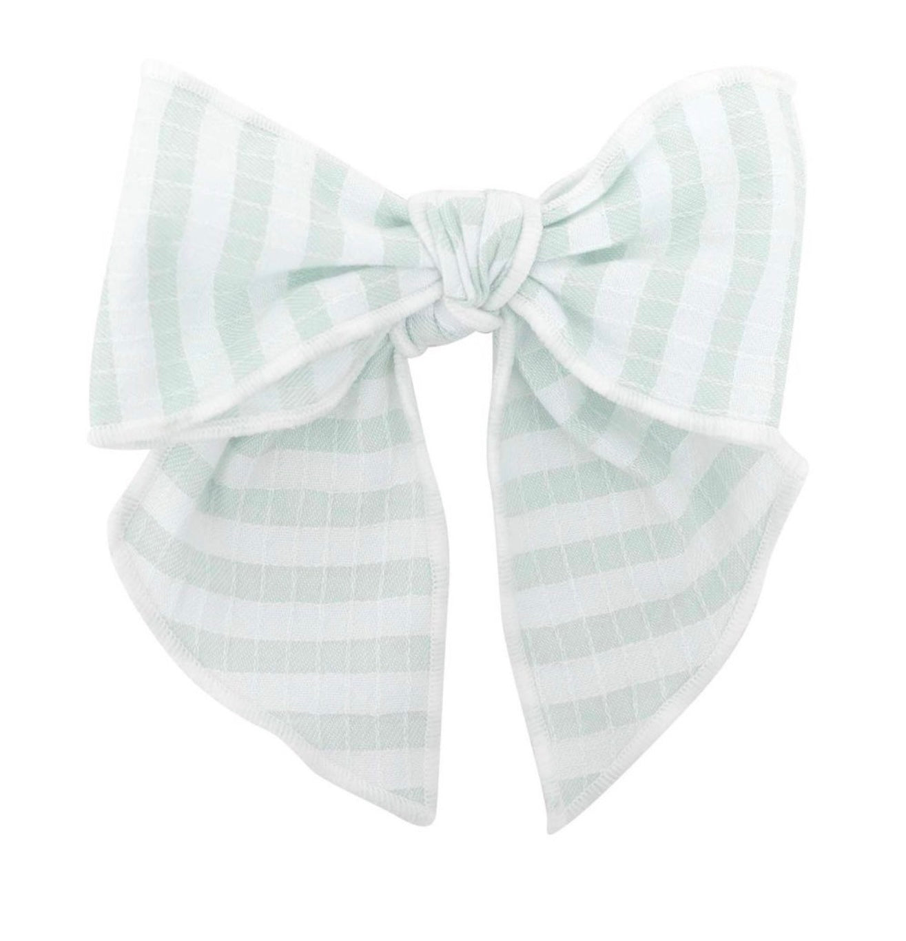 Gancho de cabelo com padrão às riscas brancas e verdes da Calamaro Baby para bebé menina e recém-nascida.