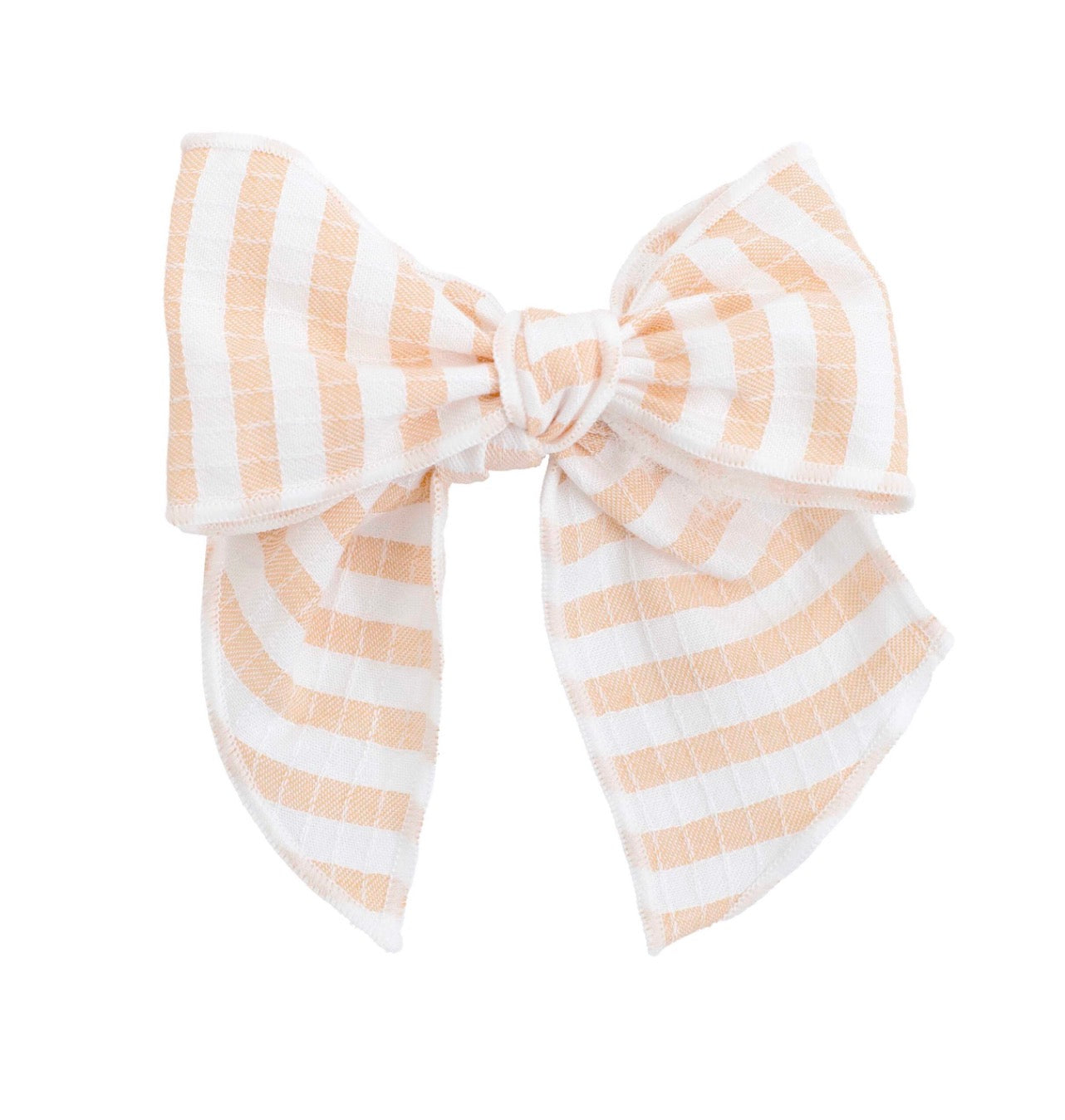 Gancho de cabelo com laço as riscas laranja e branco da Calamaro Baby para bebé menina e recém-nascida.